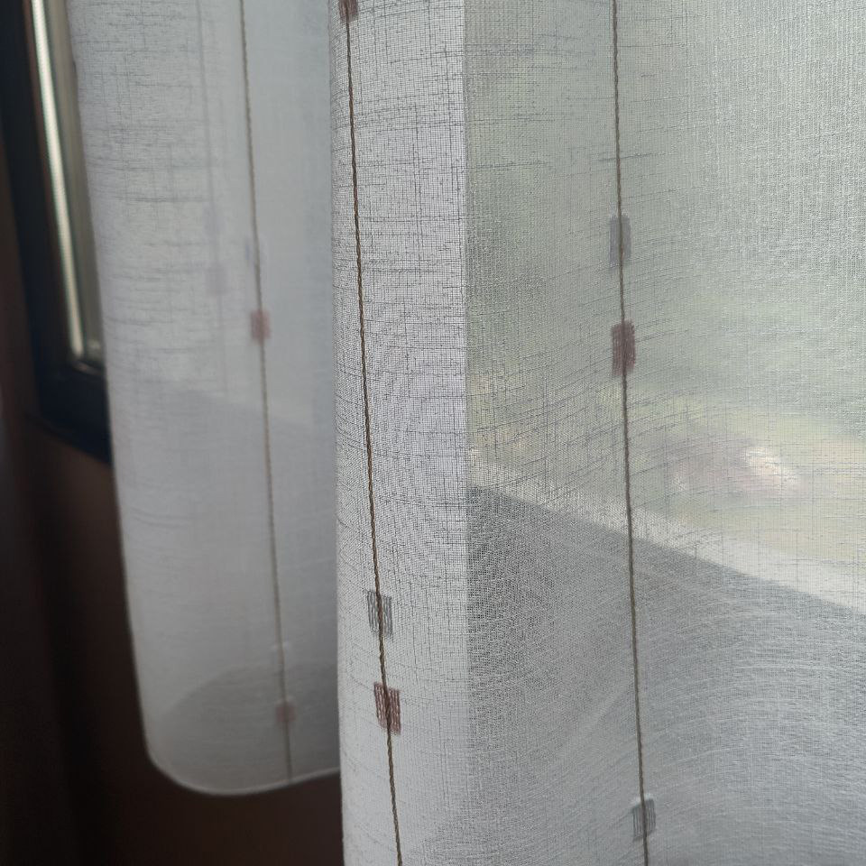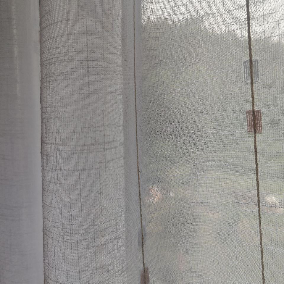Haizea se distingue por su estilo sencillo pero con mucho estilo. Las finas rayas bordadas con motivos geométricos aportan un toque de elegancia y modernidad, asegurando que este visillo se integre perfectamente en una variedad de estilos de decoración. Su diseño equilibrado permite una fácil combinación con diferentes elementos decorativos.