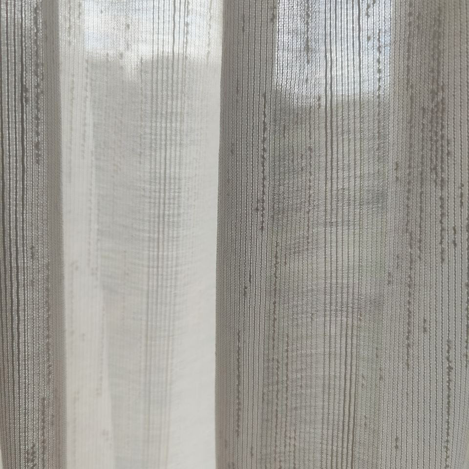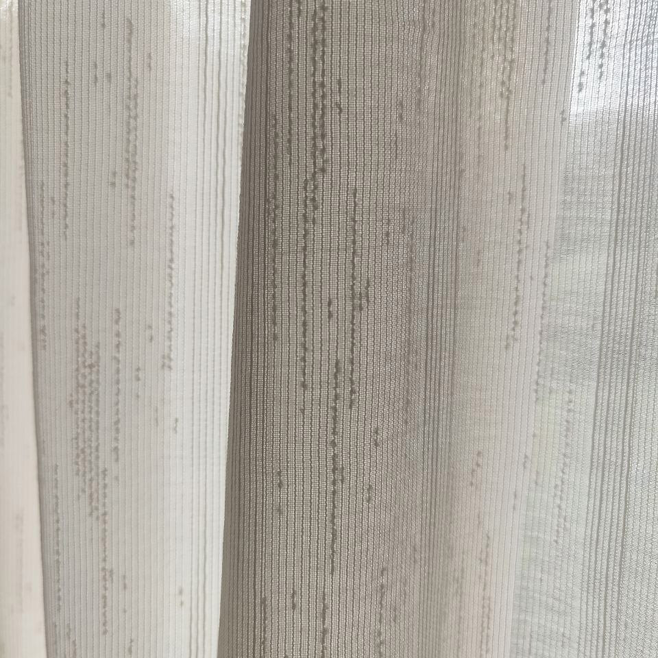 El poliéster, componente principal de este tejido, contribuye al tacto fresco y suave de este visillo. Cada hilo de poliéster se entrelaza para crear una experiencia sensorial única, donde la frescura se encuentra con la suavidad.