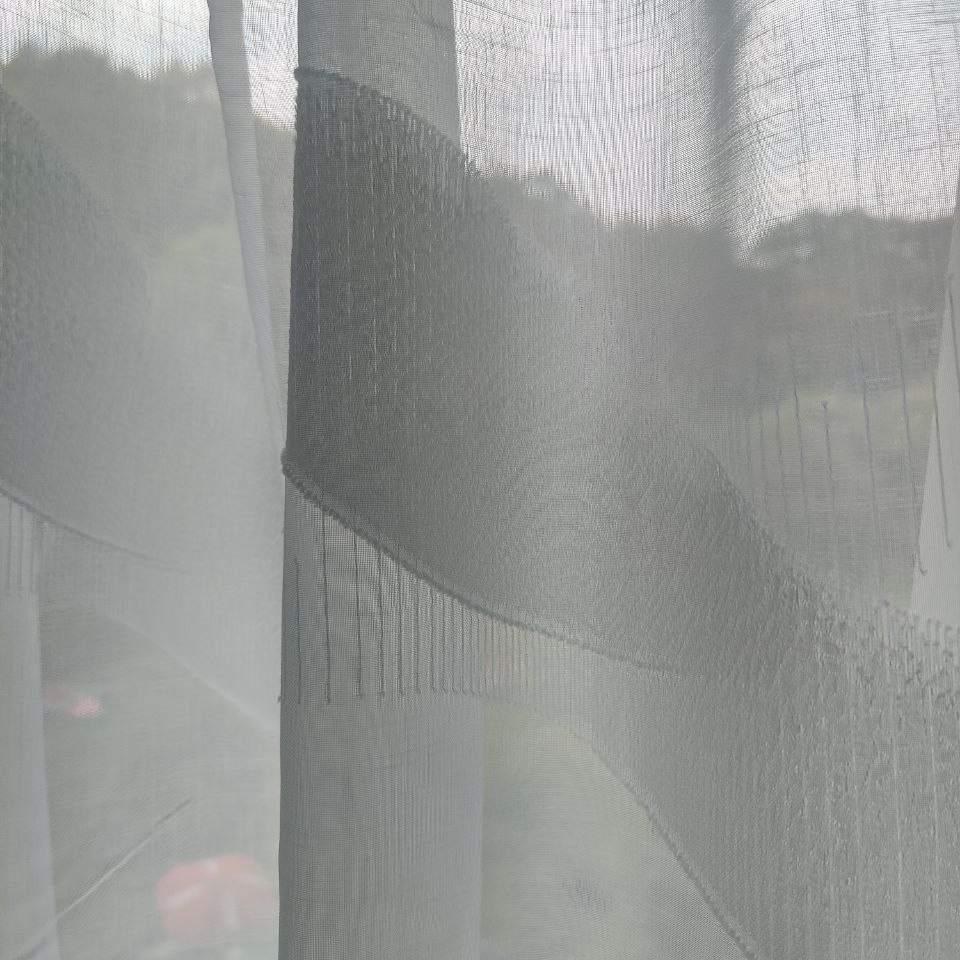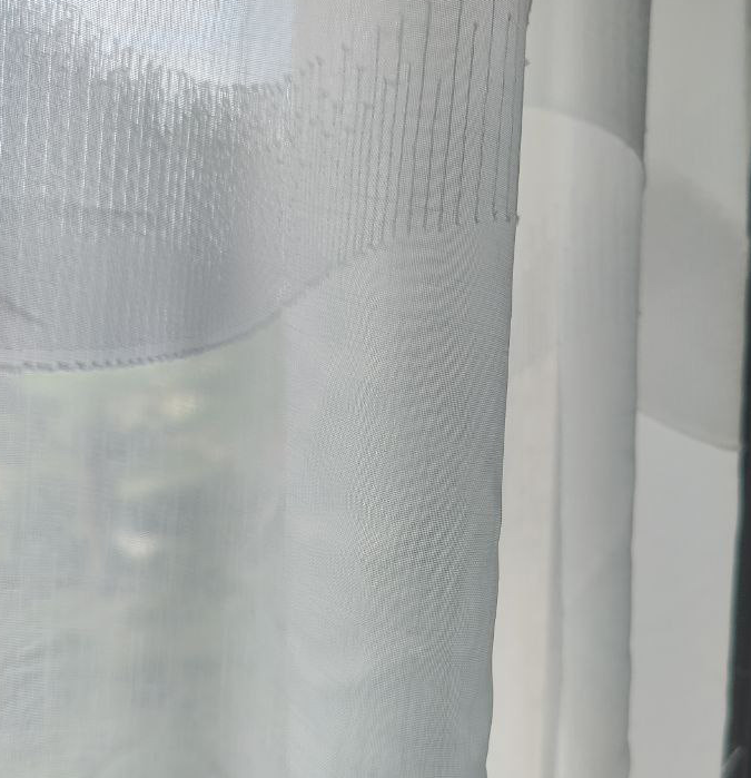 La transparencia alta de este tejido es como un abrazo de luz que inunda tu salón. Esta característica permite que la luz natural se filtre delicadamente, creando un ambiente luminoso y acogedor pero siempre manteniendo la intimidad de tu hogar. Las franjas horizontales curvas, al interactuar con la luz, generan patrones juguetones que transforman tus interiores en una sinfonía visual de luminosidad y vitalidad.