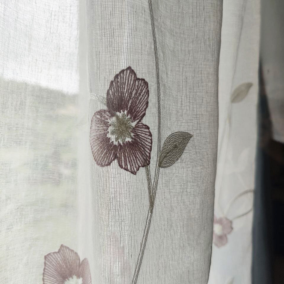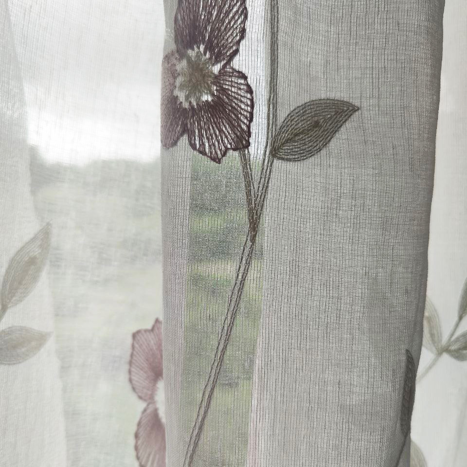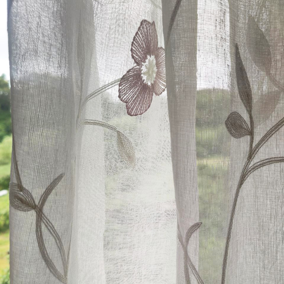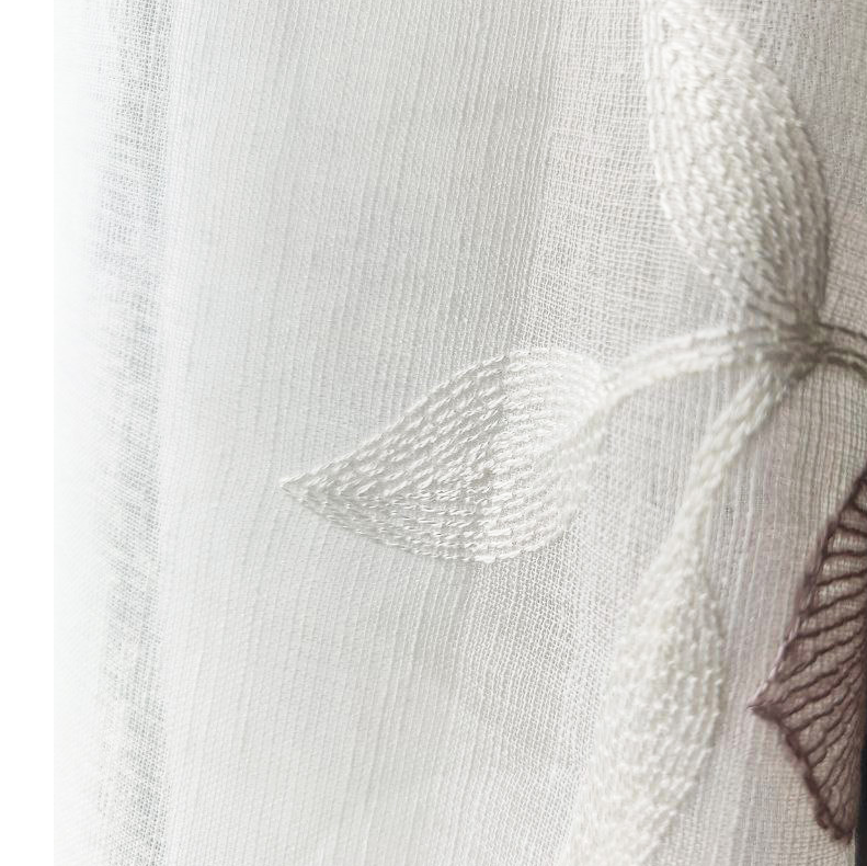 Este no es solo un visillo, es una obra maestra floral que viste tus ventanas y florece en tu hogar, creando un ambiente romántico y silvestre con un toque clásico. Sus preciosos motivos bordados en granate sobre un fondo blanco evocan la frescura de la primavera y transportan la naturaleza al interior de tu hogar.