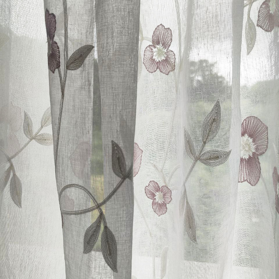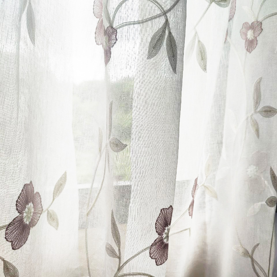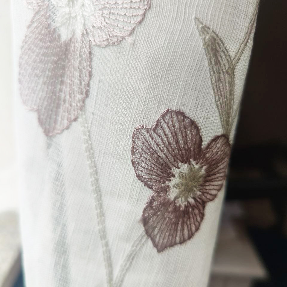 Este no es solo un visillo, es una obra maestra floral que viste tus ventanas y florece en tu hogar, creando un ambiente romántico y silvestre con un toque clásico. Sus preciosos motivos bordados en granate sobre un fondo blanco evocan la frescura de la primavera y transportan la naturaleza al interior de tu hogar.