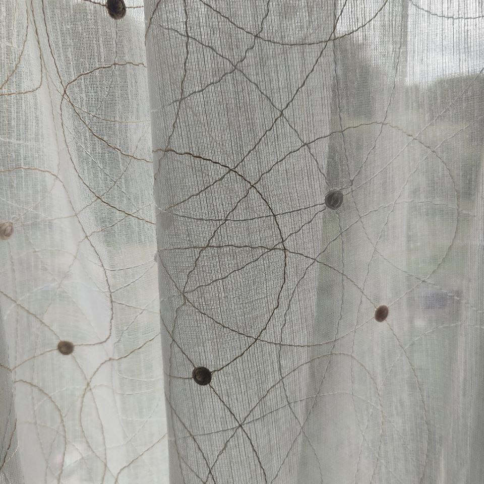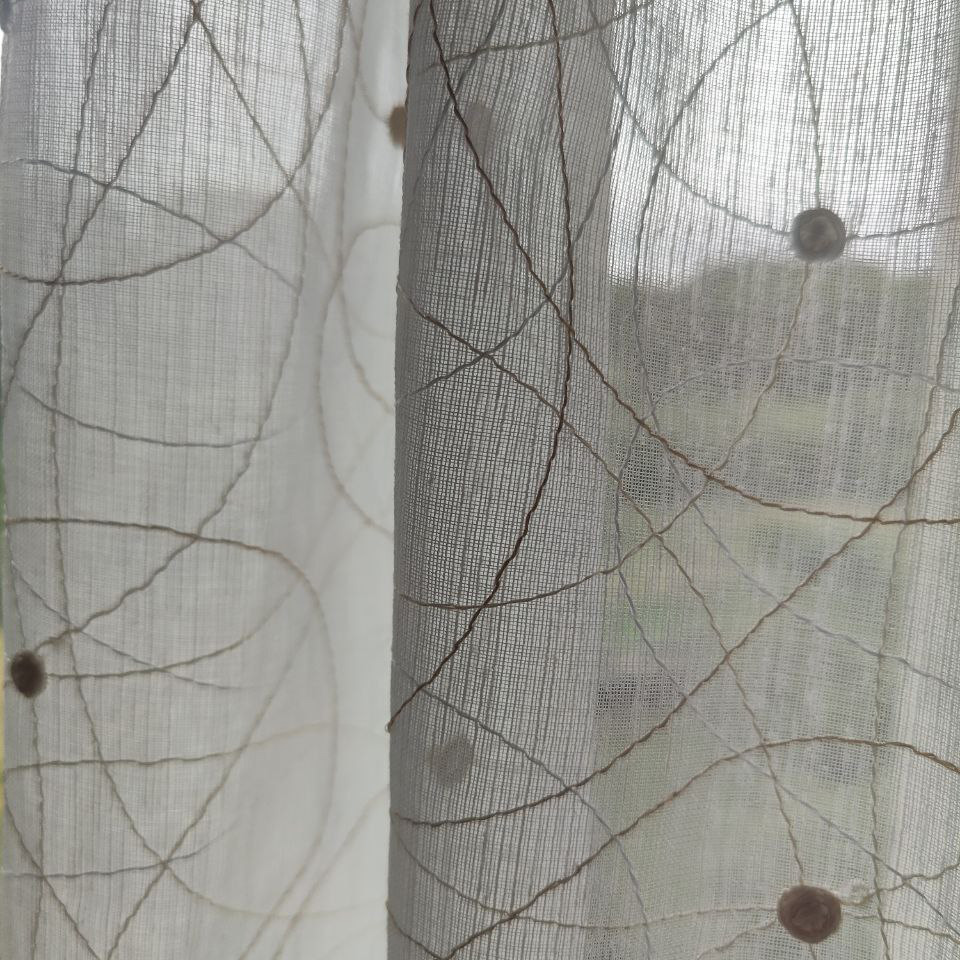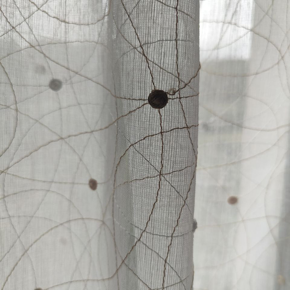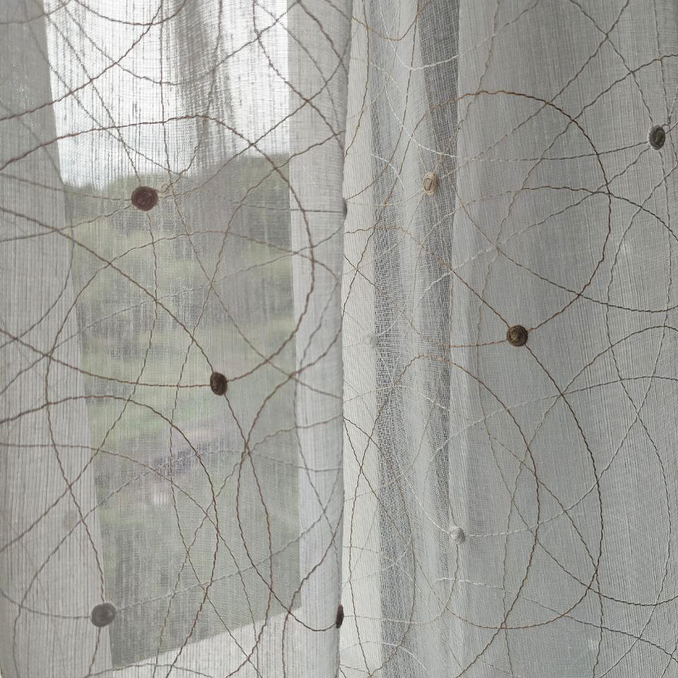Su transparencia es como magia para tus ventanas. Las líneas bordadas y los motivos circulares juegan con la luz, creando sombras encantadoras y llenando tu hogar de vida y dinamismo. Mantiene la amplitud y la frescura en la habitación, haciendo que cada rincón se sienta más amplio y luminoso.