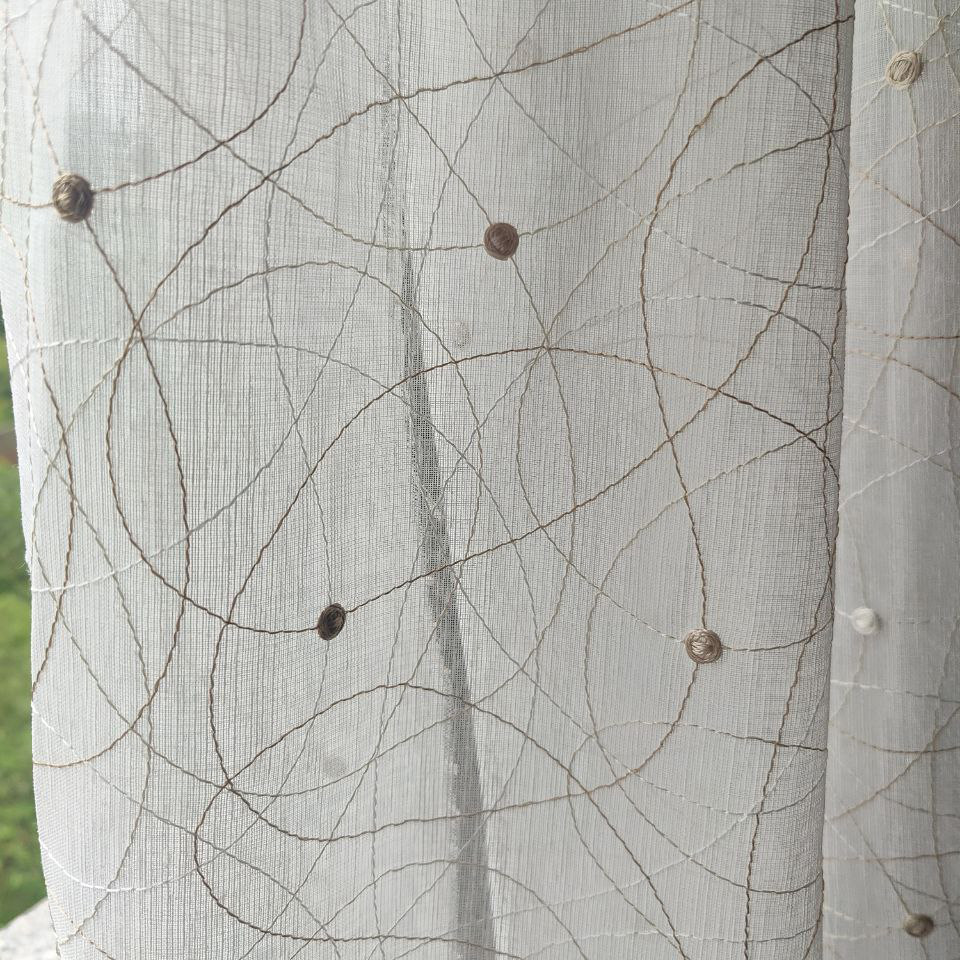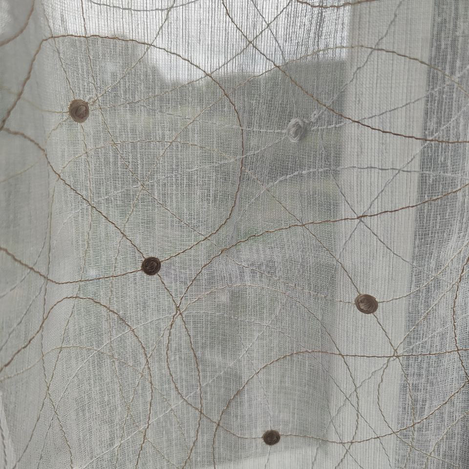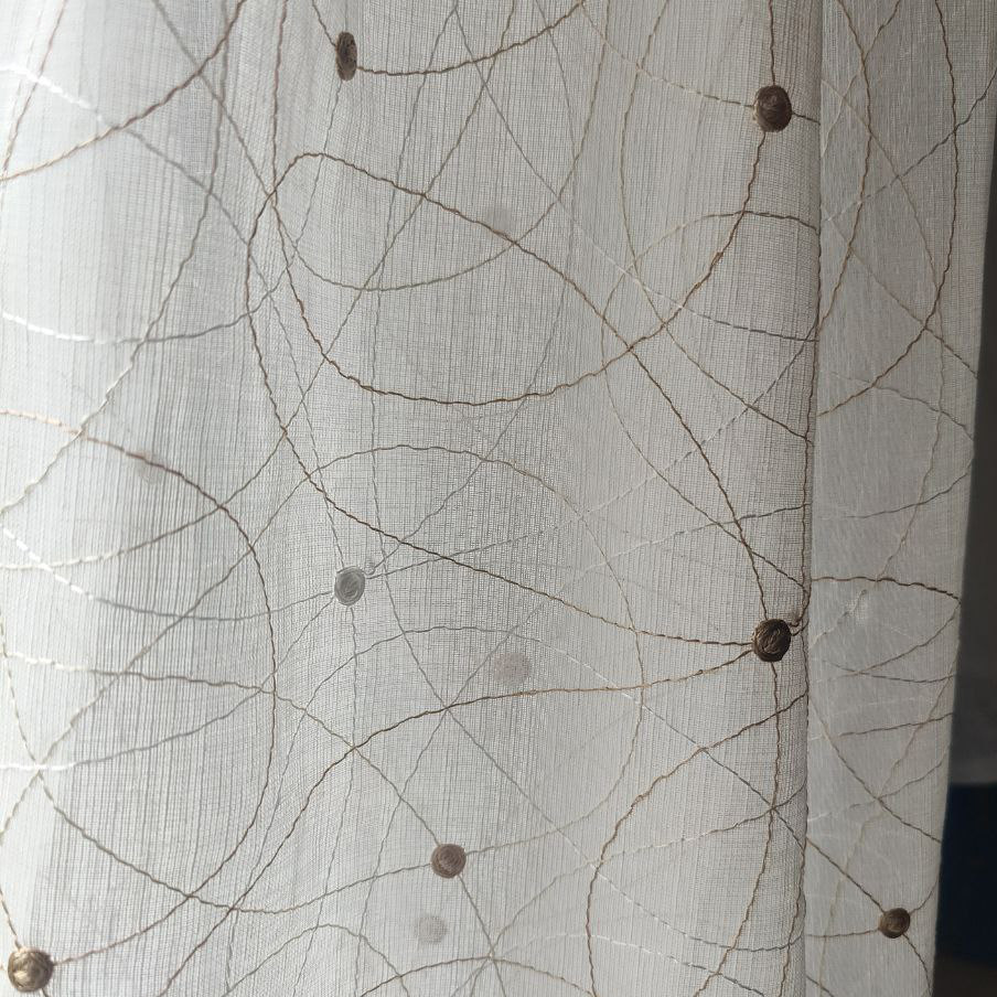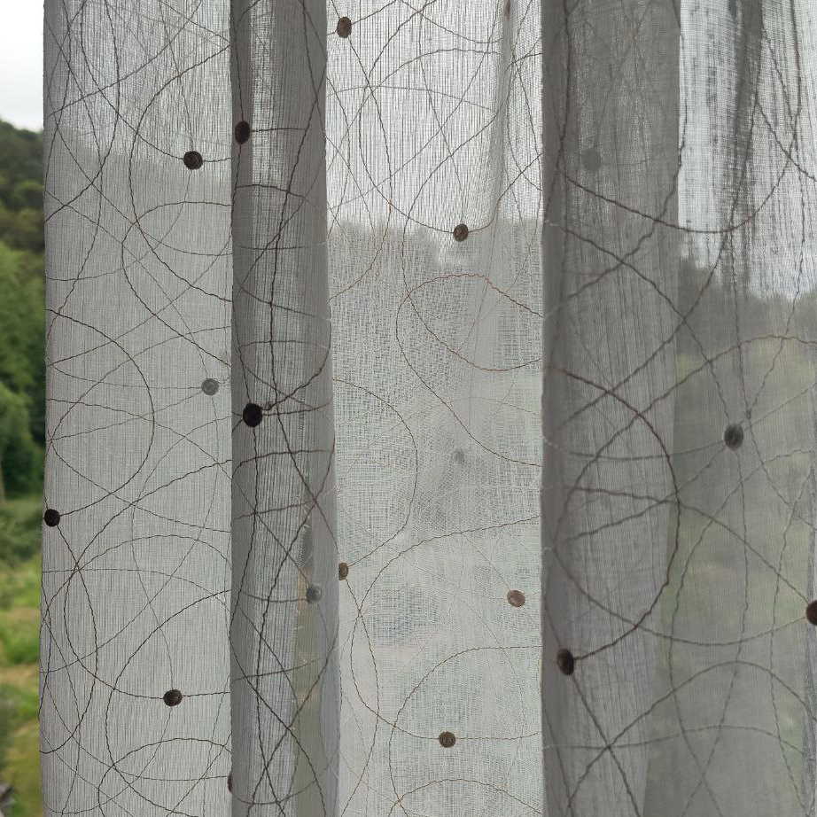 Su transparencia es como magia para tus ventanas. Las líneas bordadas y los motivos circulares juegan con la luz, creando sombras encantadoras y llenando tu hogar de vida y dinamismo. Mantiene la amplitud y la frescura en la habitación, haciendo que cada rincón se sienta más amplio y luminoso.